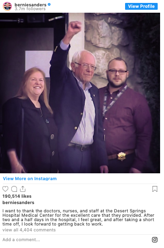 Bernie Sanders Says He’s ‘Feeling So Much Better’ After Suffering Heart Attack