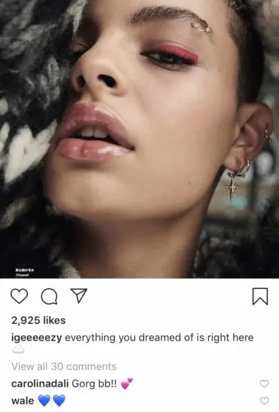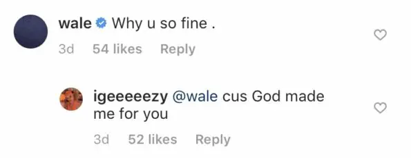 The “Lotus Flower Bomb” rapper isn’t hiding how he feels about the slender print model. He showers India Graham with compliments in her Instagram comments. In one of them, they exchange pleasantries: