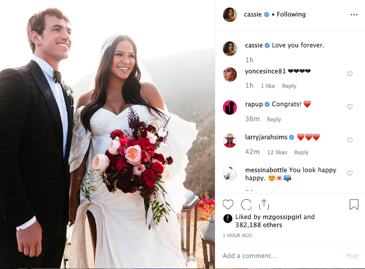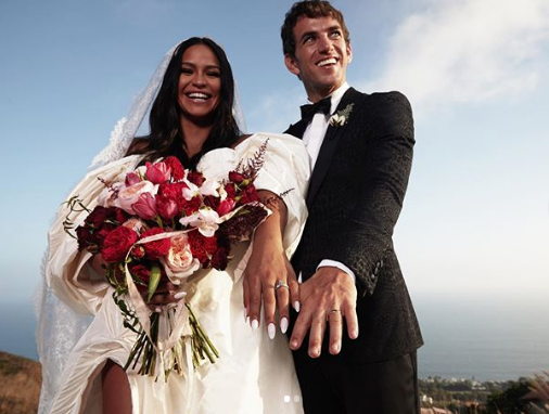 Cassie and Alex Fine are giving us a glimpse inside their special day. Today (Oct. 9th), the couple both shared wedding photos on social media. The 33-year-old pregnant bride shared a photo of her smiling at the alter with the professional boxer captioning it: