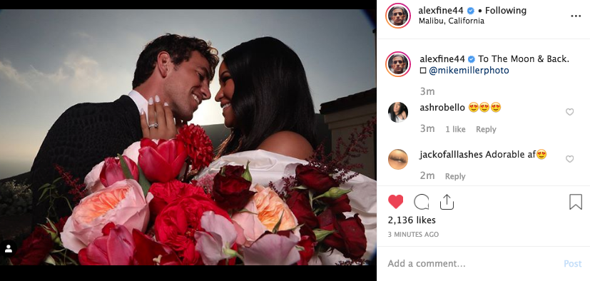 Alex shared an image of them locking eyes with each other surrounded by flowers. He captioned it: