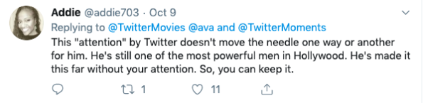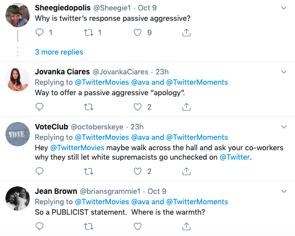 @TwitterMovies has since responded and admitted that it dropped the ball. Still, some aren’t necessarily happy about its comment.