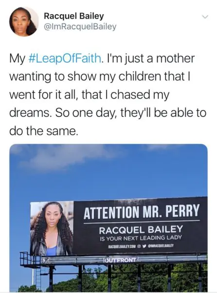 Bailey made news when she posted a billboard in Atlanta in hopes of getting Perry’s attention.