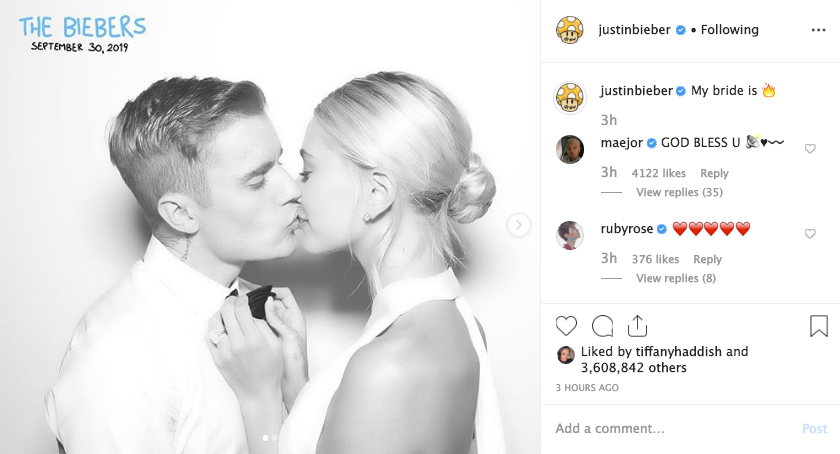 The couple married for a second time earlier this month. Beiber shared a photo of their special day, captioning it: