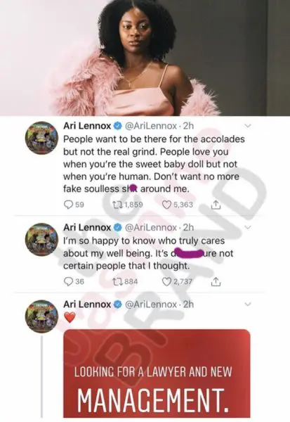 What’s going on with singer Ari Lennox‘s team? Apparently the Dreamville starlet is looking to replace both her lawyer and manager. She took to Twitter with this bold rant: