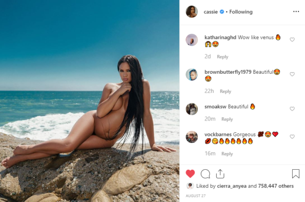 Cassie Shares New, Belly-Baring Nude Photo