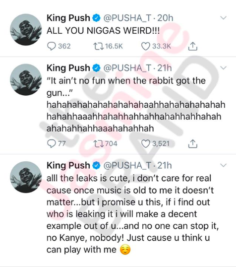 Pusha T Sends Warning To Those Who Leaked His Music ‘I Will Make A Decent Example Out Of You & No 1 Can Stop It’