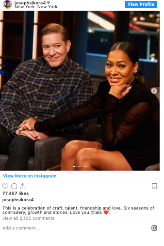 LaLa took to Instagram to speak on the scene and thanked creator 50 Cent, as well as her on-screen boyfriend Joseph Sikora, who plays Tommy.