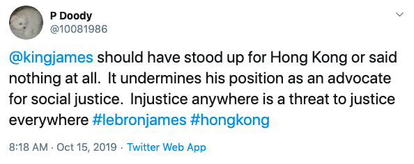 Morey’s tweet came as rallies in Hong Kong, which was once a British colony before it came a territory in China, called out Beijing for taking away its liberties. China has reportedly viewed the protestors as violent and a barrier to its nationalism.