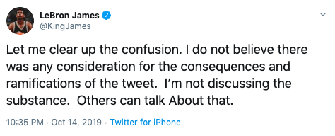 Now, many have taken issue with James’ perspective. When asked if Morey should face consequences, James shared his thoughts during a press conference Monday (Oct. 14),