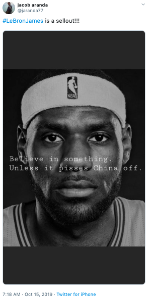 LeBron James on if Daryl Morey should be reprimanded for his tweet pic.twitter.com/6hCE8vCyNn