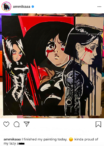 He swooned over a recent post that Ammika Harris shared featuring her artwork. It looks like Chris Brown is Ammika Harris’s #1 fan when it comes to her painting skills.