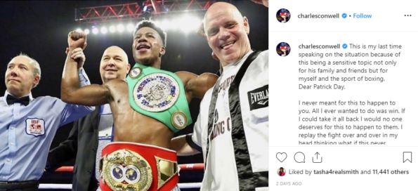 “@charlesconwell This is my last time speaking on the situation because of this being a sensitive topic not only for his family and friends but for myself and the sport of boxing.