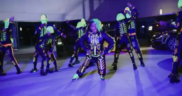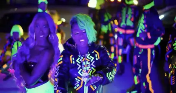 In her traditional video fashion, Missy and her crew of dancers grooved to the beat while wearing futuristic glow-in-the-dark bodysuits with matching hair.