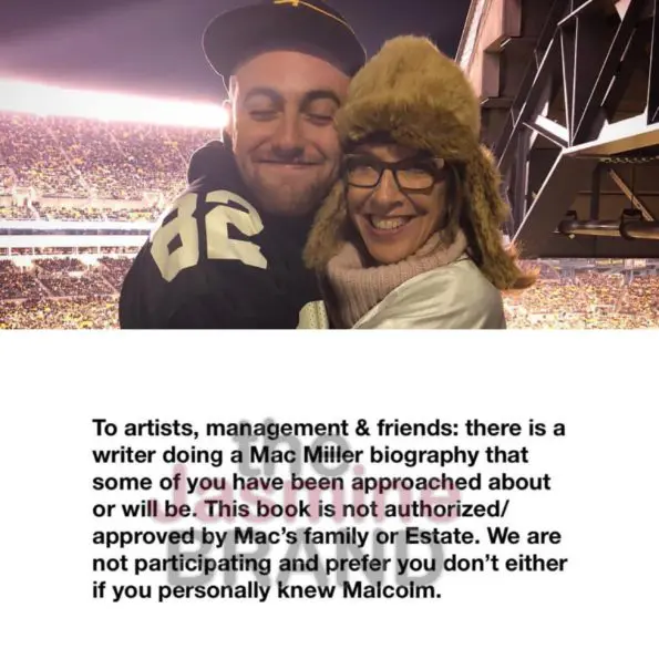 “To artists, management & friends: there is a writer doing a Mac Miller biography that some of you have been approached about or will be. This book is not authorized/approved by Mac’s family or Estate. We are not participating and prefer you don’t either if you personally knew Malcolm.”