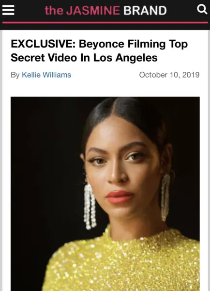 As previously reported, theJasmineBRAND exclusively reported last week (Oct. 10th), Beyonce was spotted in Los Angles filming a top secret project. Sources tell us that the top secret shoot is either part of a music video or a “long form” video.