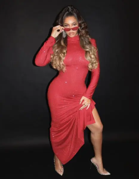 Beyoncé Keeps It Sexy In All Red Dress w/ High Ponytail