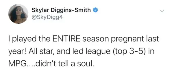 “I played the ENTIRE season pregnant last year! All star, and led league (top 3-5) in MPG, didn’t tell a soul.”