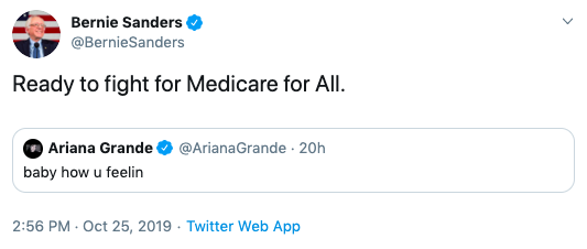 Ariana Grande Fans Out After Bernie Sanders Responds To Her Tweet And Says ‘Ready To Fight For Medicare For All’