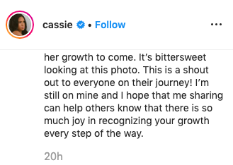“I’m so excited for her growth to come. It’s bittersweet looking at this photo. This is a shout out to everyone on their journey! I’m still on mine and I hope that me sharing can help others know that there is so much joy in recognizing your growth every step of the way.”