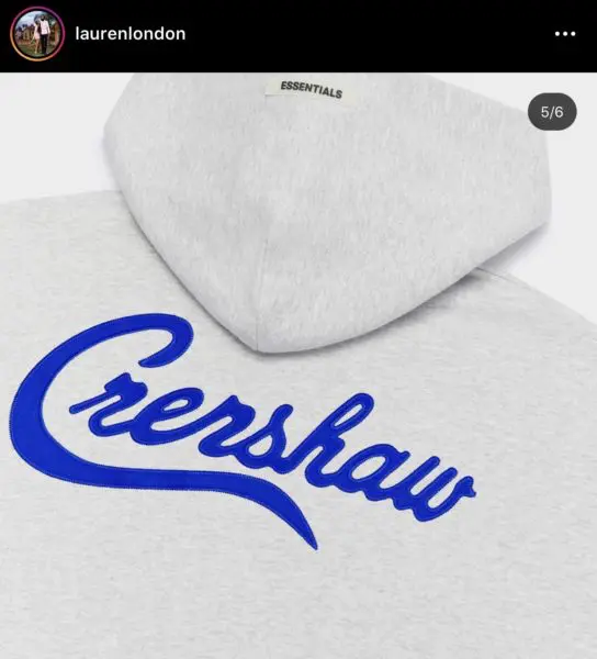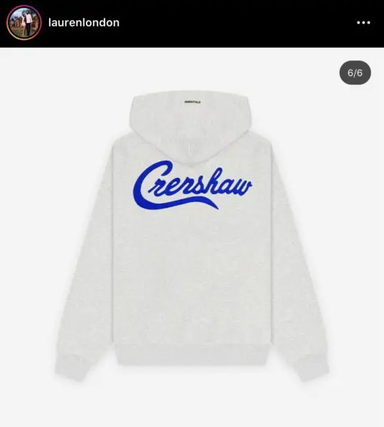 The rapper’s girlfriend, actress Lauren London, shared a few photos of the Marathon Clothing and Fear of God collection called, 08 Crenshaw.