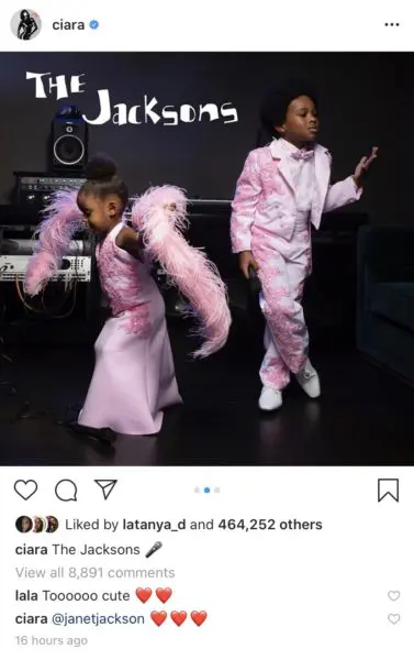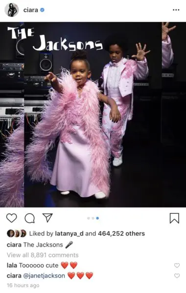 Singer Ciara made sure her family leveled up for Halloween this year! Yesterday (10/29/19), her adorable children – Future Zahir, 5; and Sienna Princess, 2 – melted the hearts of her Instagram followers with their spot-on recreation of Randy and Janet Jackson. Future and Sienna stunned in the exact pink costumes worn by Randy and Janet on the “Jackson Family Variety Show.”