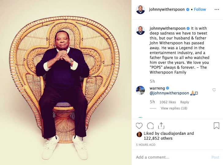 It is with deep sadness we have to tweet this, but our husband & father John Witherspoon has passed away. He was a Legend in the entertainment industry, and a father figure to all who watched him over the years. We love you “POPS” always & forever. – The Witherspoon Family