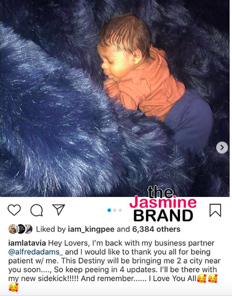 She shared a photo of the adorable newborn and also teased a brand new business venture with her long-time business partner Alfred Adams. Roberson wrote Tuesday (Oct. 29),