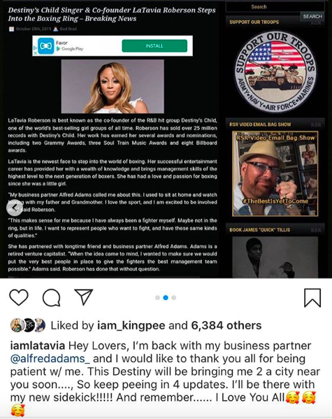 Also in her announcement, Roberson included a press release that revealed her brand-new venture where she developed a management team in the boxing world.
