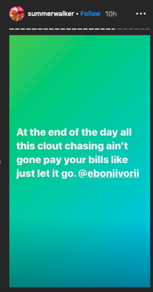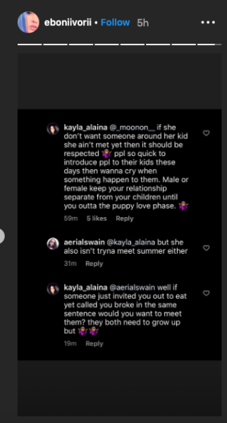 Both ladies posted comments from fans as Summer told people to stop sending her Eboni’s Instagram Live.