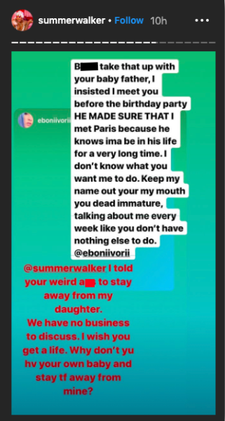 Summer first responded after it was clear Eboni took issue with Summer being around the child.