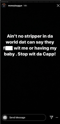 Rumors swirled that MoneyBagg Yo impregnated a stripper during his romance with Megan. But he took to Instagram to deny those rumors.