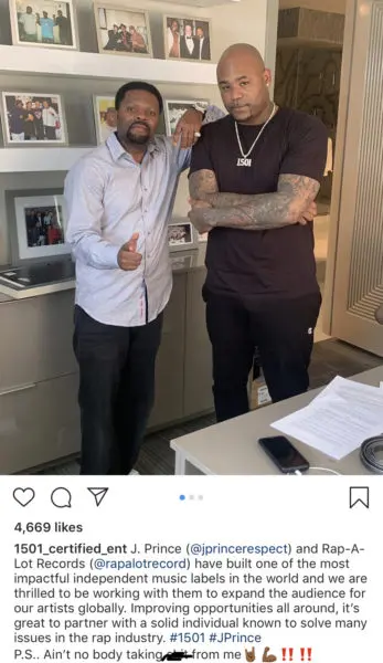 “That’s the industry. Unfortunately for whatever reason, I wasn’t tuned in about it. I had the powers that be, you know, come at me a certain way, and I had to go get J. Prince. Me and J. Prince made a post together before her post, but everybody thinks I did it after and was all upset. At the time I wasn’t even aware of her signing… It was a little strange. I chalk all my mishaps to the industry.”