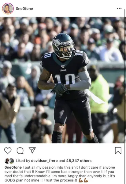 After making their announcement, DeSean Jackson took to his social media putting in notice that he will return with a vengeance. He writes,