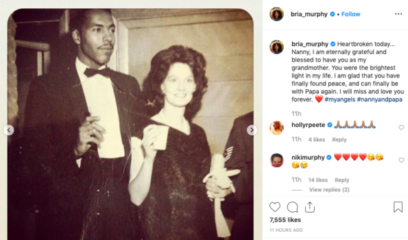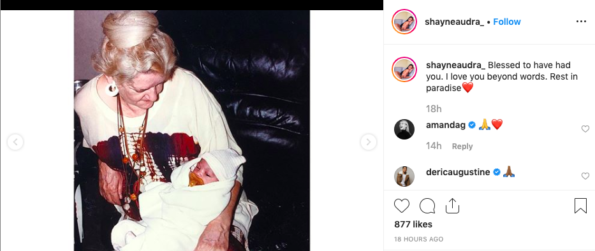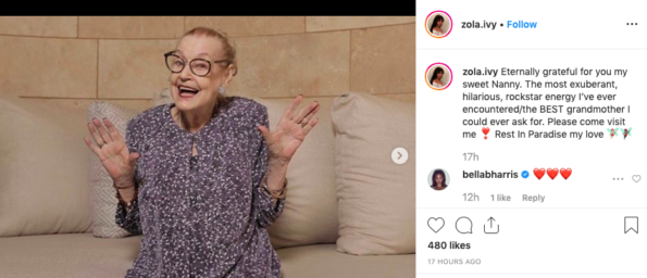 “Heartbroken today… Nanny, I am eternally grateful and blessed to have you as my grandmother. You were the brightest light in my life. I am glad that you have finally found peace, and can finally be with Papa again. I will miss and love you forever”