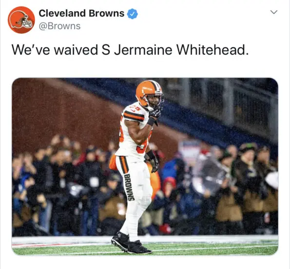 In response to the safety’s online exchange, the Brown’s made their decision to cut Whitehead the following day (Nov. 4th). According to reports, a spokesman for the Browns released a statement on their decision,