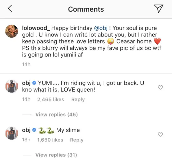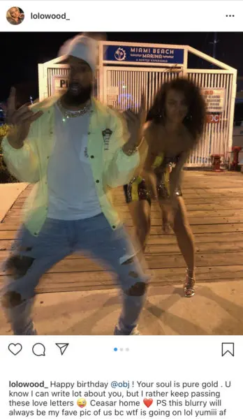 “Happy birthday @obj ! Your soul is pure gold . U know I can write lot about you, but I rather keep passing these love letters Ceasar home PS this blurry will always be my fave pic of us bc wtf is going on lol yumiii af”