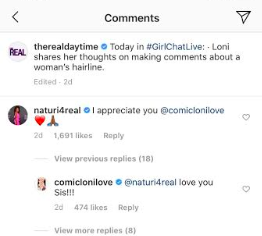 Naughton caught wind of the comments and thanked Loni as the two had a moment on social media.