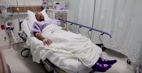 The next day was the big day where he received the procedure, and he showed off his hospital gear and the infamous hospital socks.