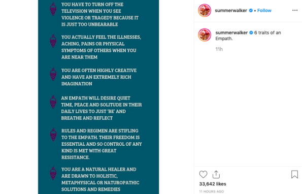 An hour before, she shared the characteristics of an empath.