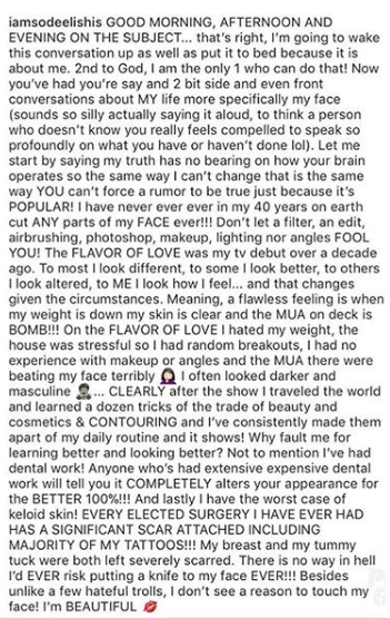 In an Instagram TV video, she shared her make-up routine step-by-step in hopes of putting the rumors to bed. She says she’s able to alter her appearance simply by contouring. Deelishis’ caption read: