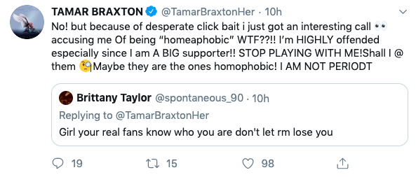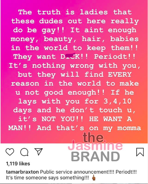 Tamar Braxton Shoots Down Accusations She’s Homophobic After Post About Gay Men: I’ve Been A Part Of The LGBT Community Since 4th Grade!
