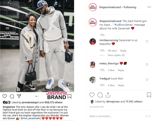 Aww! How sweet! A few of the James’ celebrity friends, including former teammate J.R. Smith and Chris Paul‘s wife, Jada, commented on the sweet flicks.
