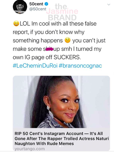 He responded to a headline that pointed out that he deleted his Instagram after trolling Naturi Naughton. He wrote,