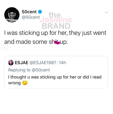 Interestingly enough, 50 Cent responded for the first time and said he didn’t mean to hurt her feelings. See their initial interaction below.