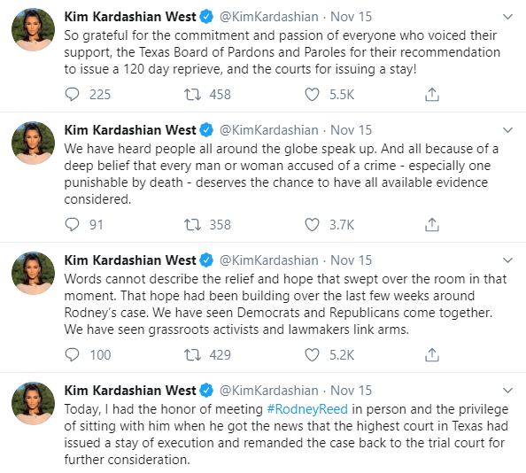 Meanwhile, a Texas governor heard the public’s cry for a more in-depth look at Rodney Reed’s case, halting his nearing fate with an execution stay. Kim Kardashian-West – known for her groundbreaking prison reform efforts along with reality TV fame – personally met with Rodney in prison.