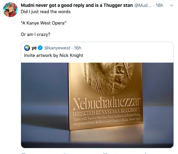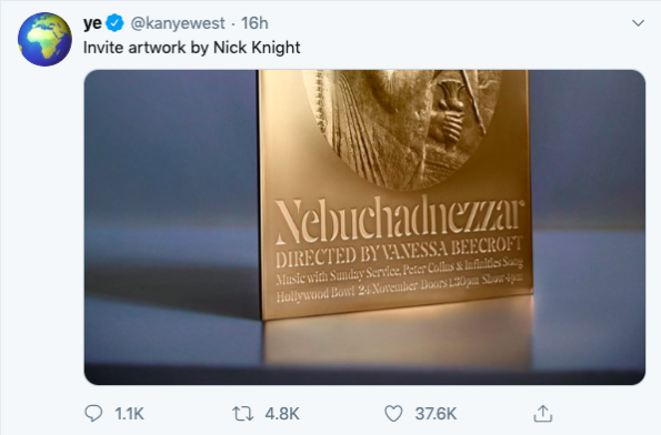 He shared the artwork for the invitation to the event titled Nebuchadnezzar.