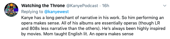 The opera is scheduled for Sunday (Nov. 24) at Hollywood Bowl and will be directed by Italian artist Vanessa Beecroft. Of course, it will also have music from his notable Sunday Service performers as well as other artists like Peter Colins and Infinite Song.