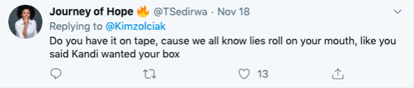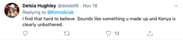 She responded to a social media user who asked about Kim Zolciak Biermann and Kenya Moore settling their issues and made it clear that will never happen.