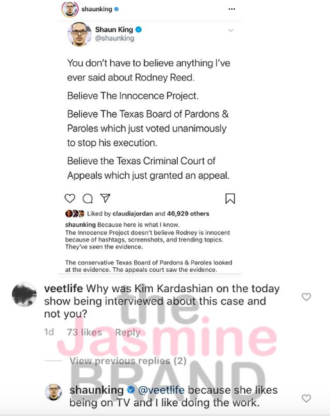 As Shaun King continued to insist that Rodney Reed is innocent, one person asked on Instagram