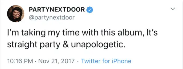 “PARTYNEXTDOOR, new PND on the way.”